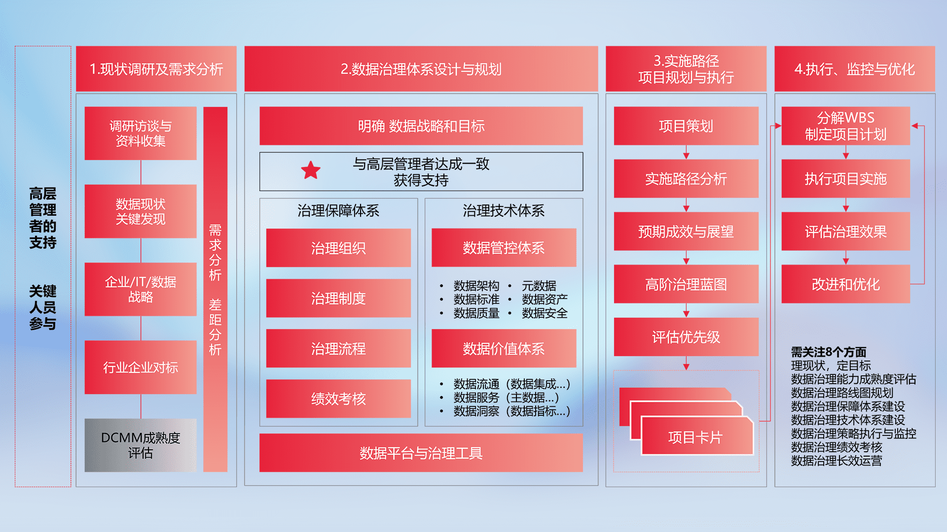 制定并执行统一的数据标准,,,,规范数据定义和格式,,,,消除冗余和不一致性,,,,实现跨部门和跨系统的数据一致性,,为企业提供标准化的数据基础。。。